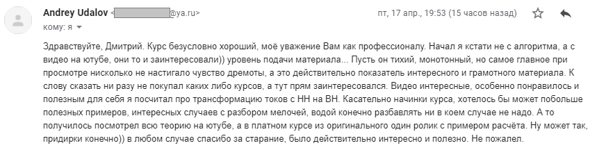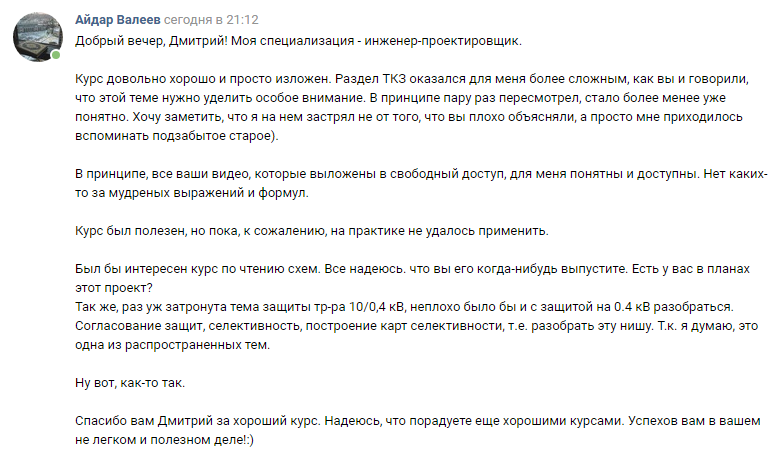 На этом Курсе стоит мое имя, а значит и репутация, как специалиста. Мир энергетики очень мал, даже в нашей огромной стране, и мне очень важна моя репутация.