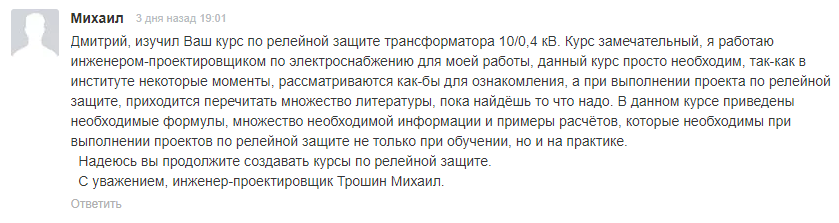 Этот Курс поможет вам профессионально разобраться с расчетами уставок самого популярного присоединения среднего напряжения и сделать вас более финансово независимым. Решать вам!