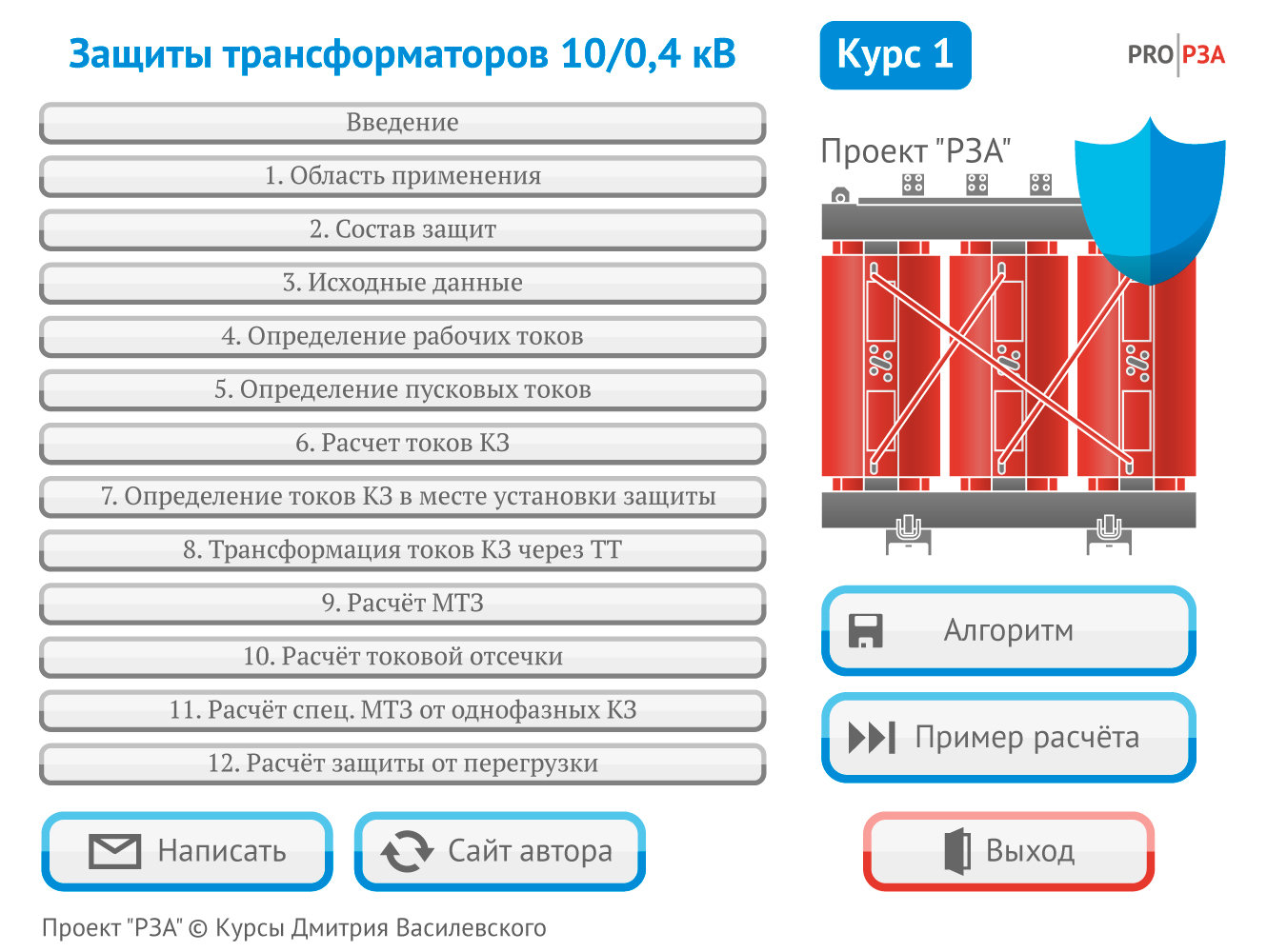 Главная задача курса - дать необходимые знания по конкретному вопросу, расчету уставок трансформаторов 10/0,4 кВ. Лишнюю информацию вы здесь не найдете, но ту, что есть изучайте как можно лучше.
